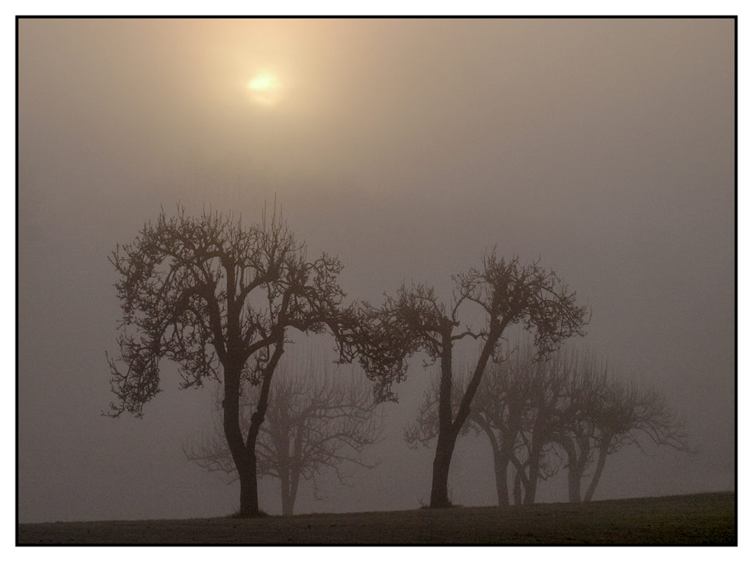 Apple Trees Shrouded in Fog