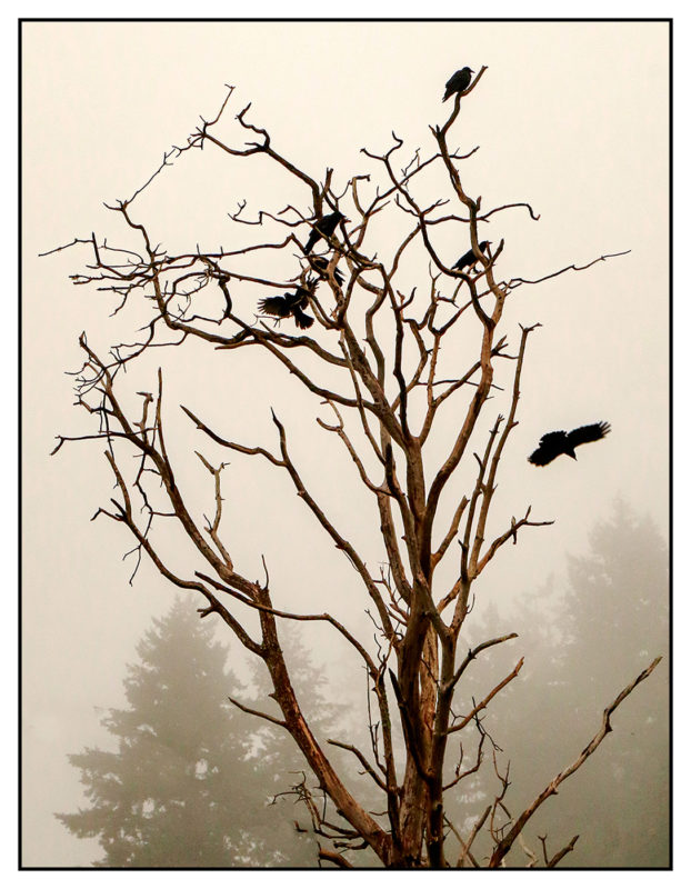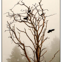 Dead Tree and Crows Against Fog Background