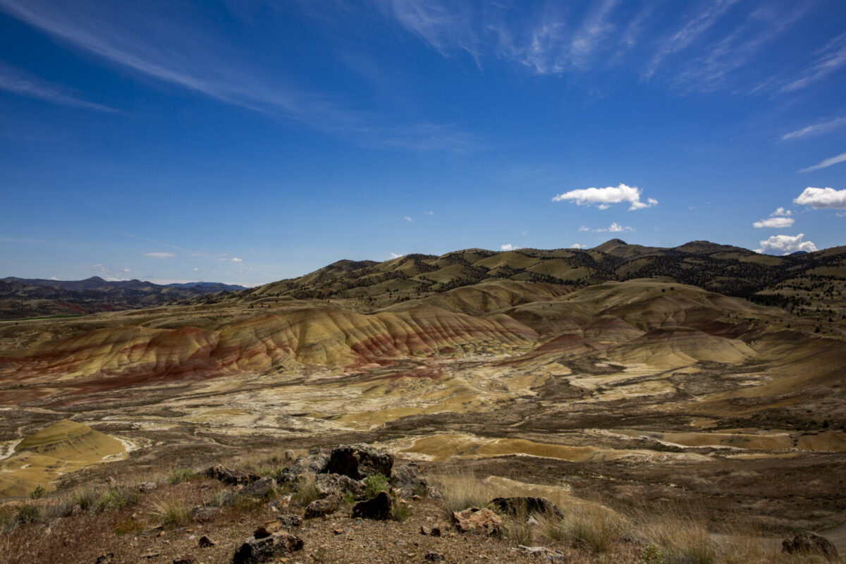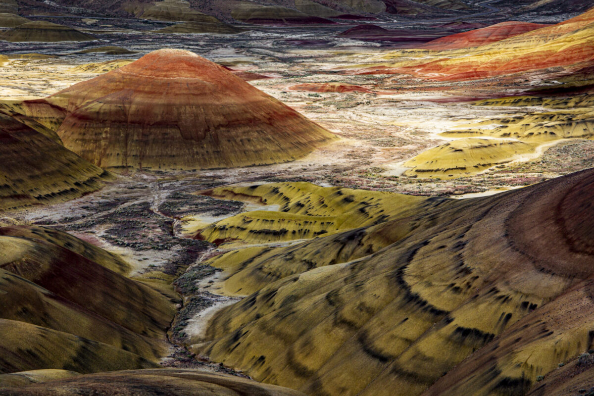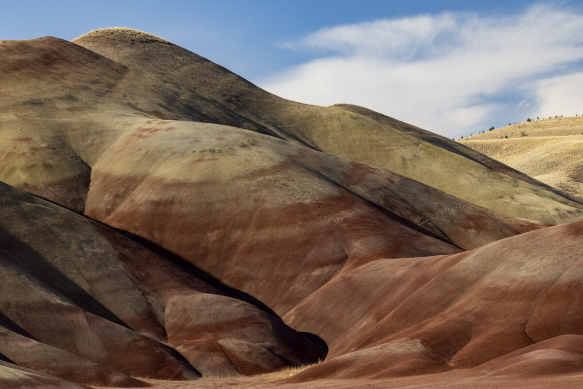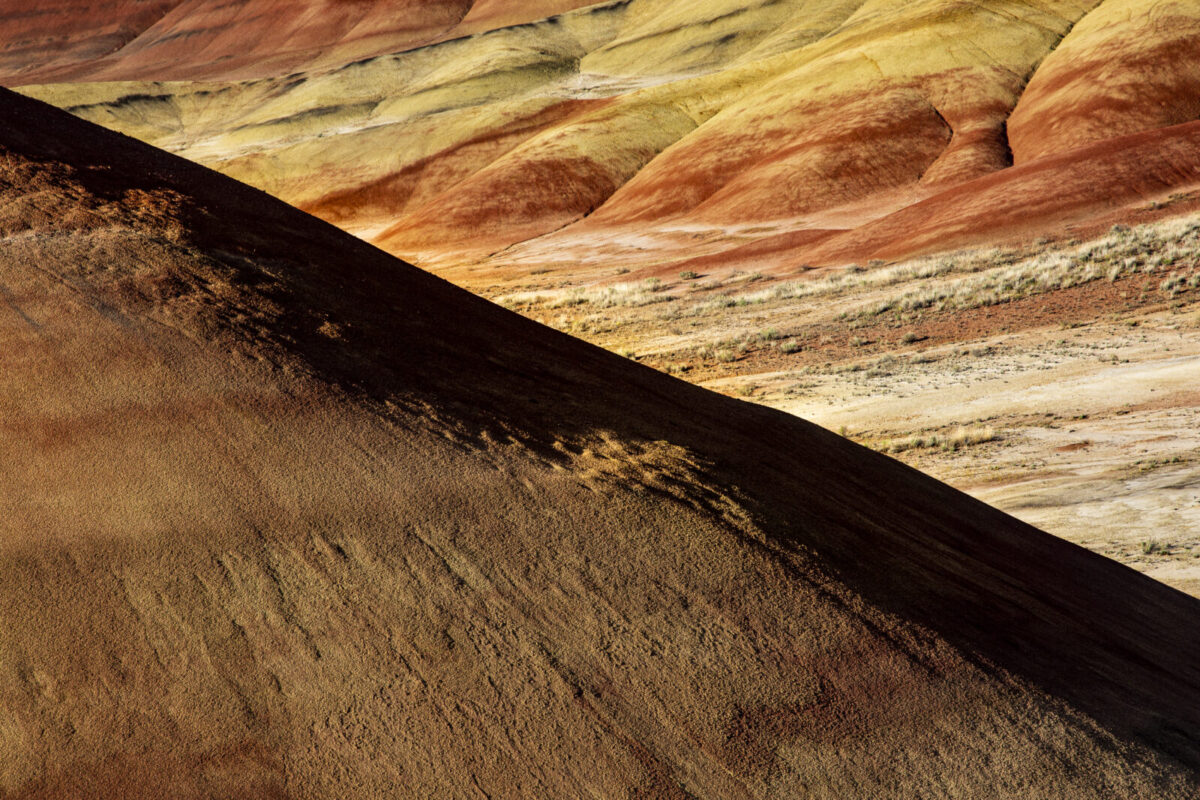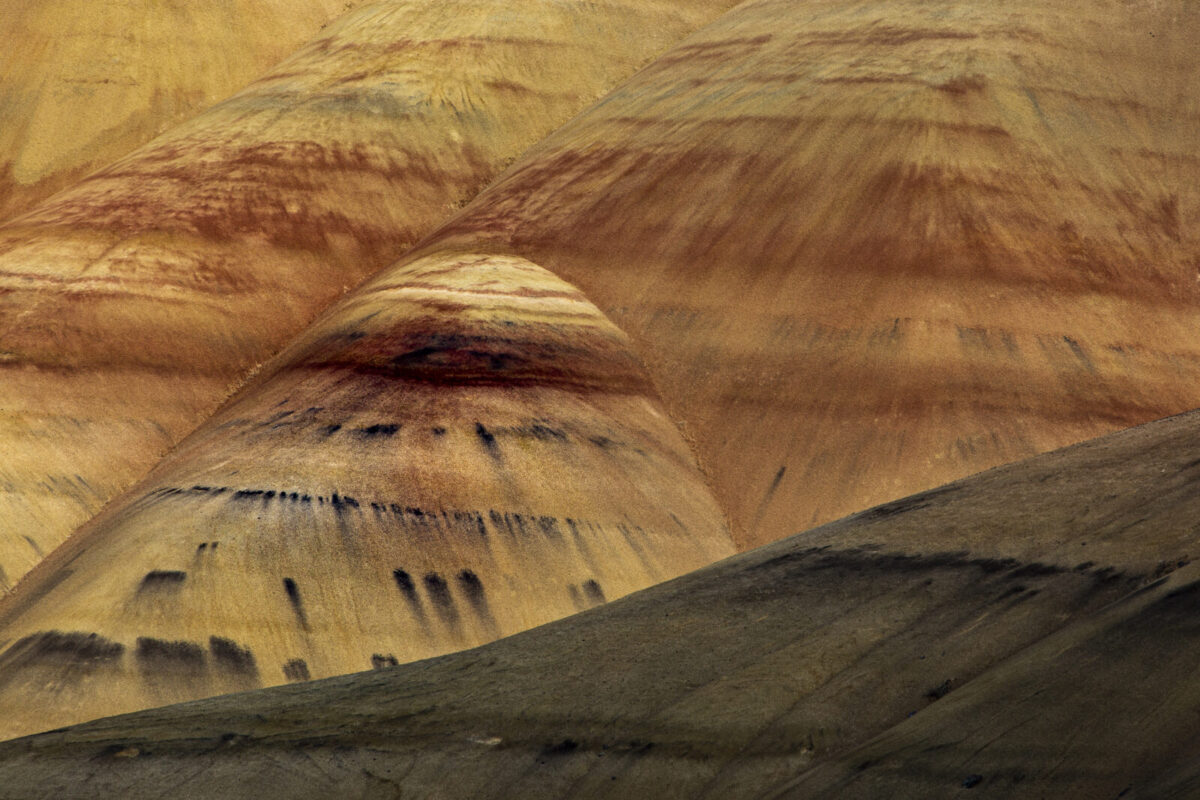 Dorothy and Bob Rosenbladt enjoy many types of photography but especially like travel and landscapes. One fascinating area that they have visited several times is the Painted Hills portion of the John Day Fossil Beds National Monument in central Oregon. The Painted Hills are composed of volcanic ash which is around 30 million years old. The multi-colored ash deposits provide a true playground for photography. Each of the primary elements of design – Line, Shape, Form, Texture, Pattern and Color – are present in abundance. These photos, hopefully, reflect some of the beauty of this remarkable area.