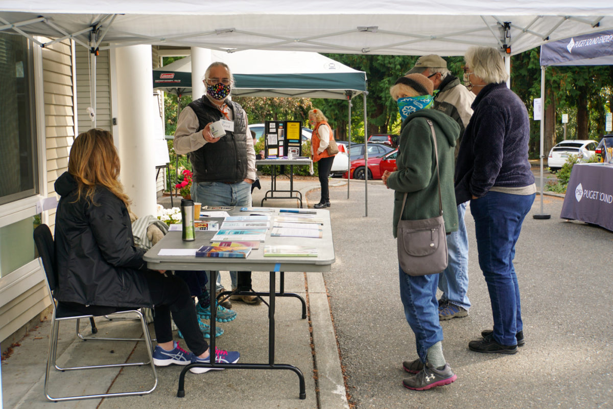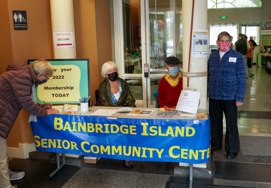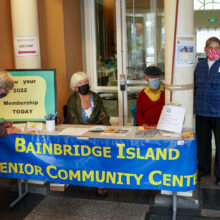 Resourceful people of all ages attended the Senior/Community Center at Waterfront Park for an “Oktoberfest” sharing of community for-profits and non-profits staffing information tables. The event was sponsored by Puget Sound Energy and $1 Kommuter Kolsch beer samples were provided by Bainbridge Brewing.